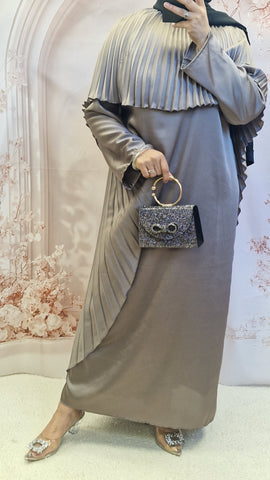 Stunning satin maxi dress ( corset style) with a pleated satin cape.