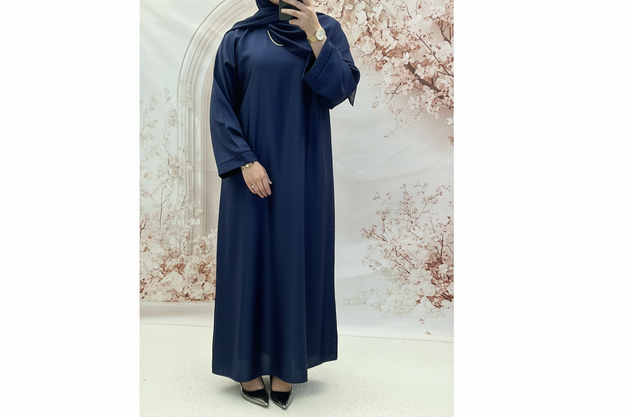 Beautiful flowy abaya with a detachable belt and matching scarf.