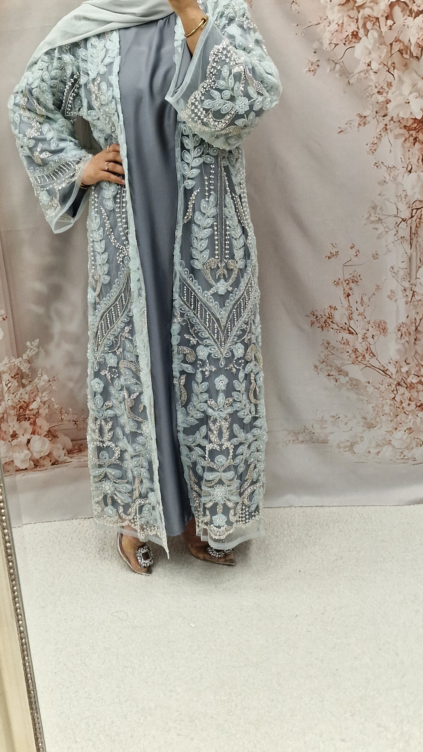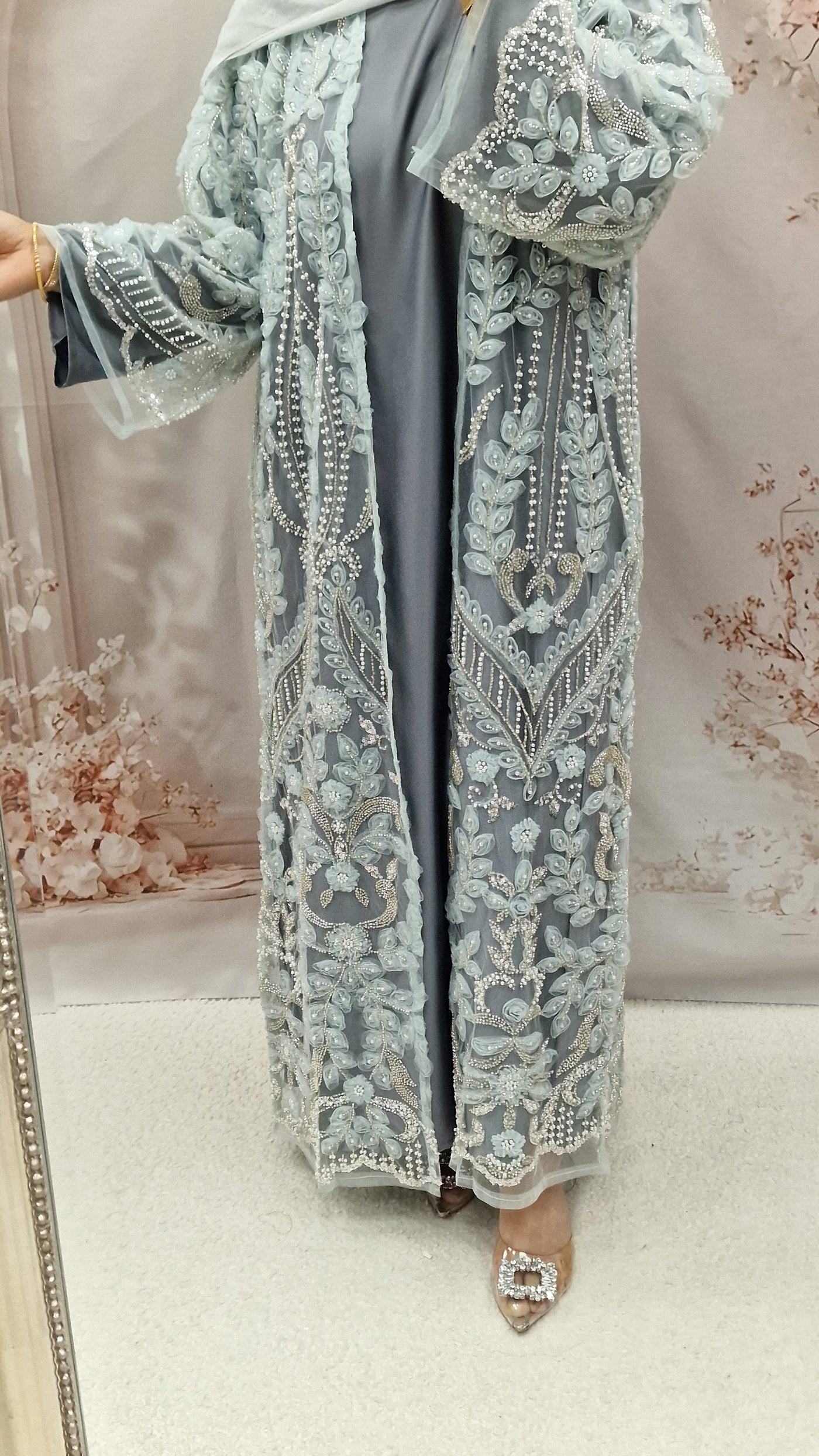 Husna net luxury abaya grey Sale