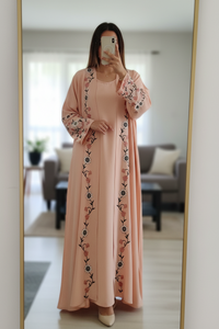 A Versatile outfit, pair the open abaya with inner to create a fresh look.