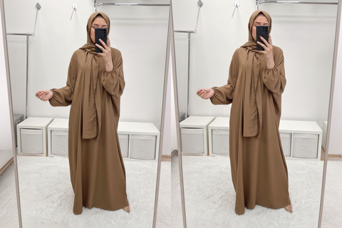 Simple and classy. Love our Rehma prayer abaya with the attached scarf.